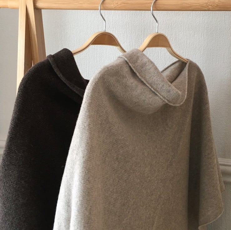 Can be worn in different ways, poncho, scarf/snood or over head, side seam in front inside out to give detail.