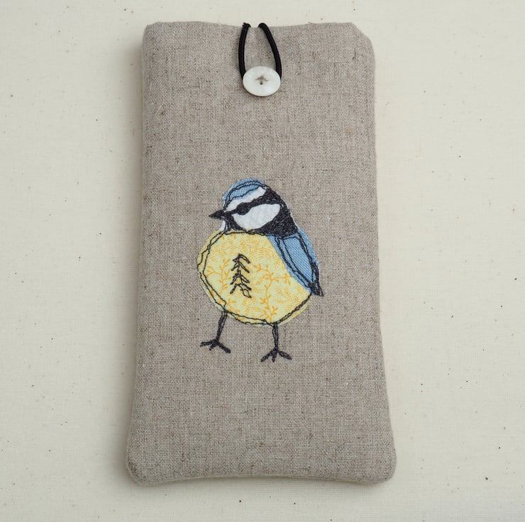 This beautiful handmade glasses case is made from Japanese Linen fabric. The case is lined with soft cotton and padded to give your glasses some protection and has a loop and button fastening. It features one of my own unique designs on the front cover and is stitched using the Freehand Machine Embroidery technique.