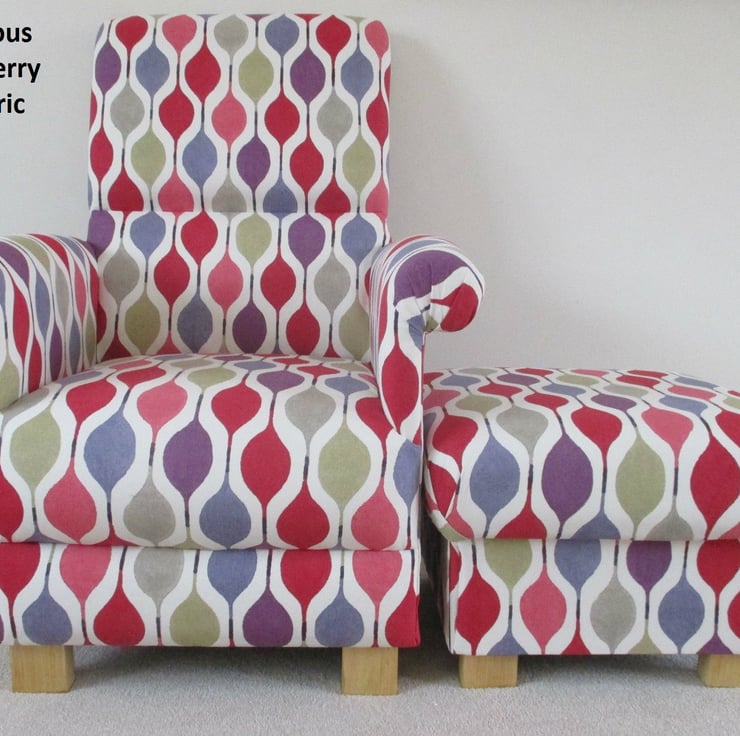 I am offering for sale this gorgeous ADULT'S chair, which has been made myself. I am a professional upholsterer with over 33 year’s experience, and have made this sturdy little chair and matching footstool, using Prestigious Verve in Red fabric.