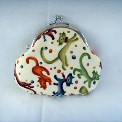 Little cats fabric with contrasting lining, padding and metal frame clasp.