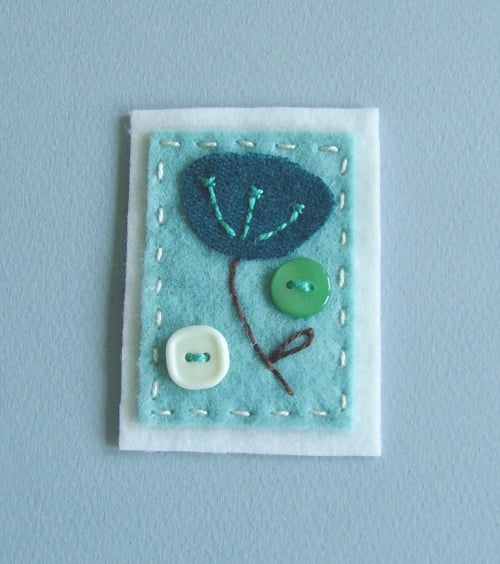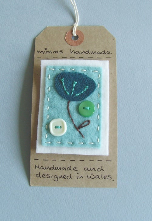 Each brooch is designed, hand cut from good quality felt and then hand sewn with embroidery thread. The brooch is finished off with two vintage buttons. It has a brooch pin securely sewn on the back. It would brighten up a coat, jumper, scarf or bag!