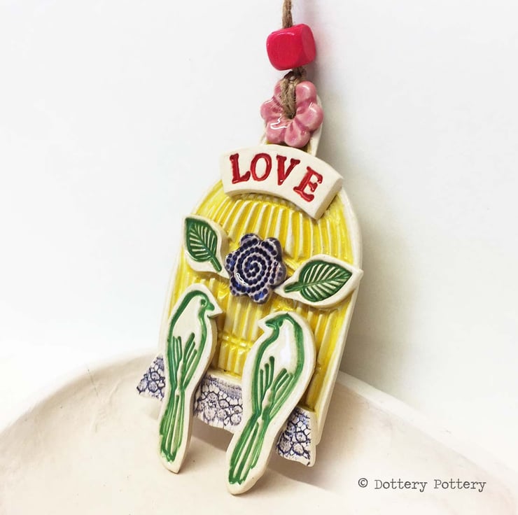 This little wall plaque is made from white earthenware clay and measures 7cm x 10cm x 1.5cm deep.