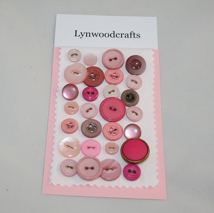 28 pretty pink buttons - hot pinks and pastels, including vintage designs, listed in my continuing attempts to 'share my stash'.