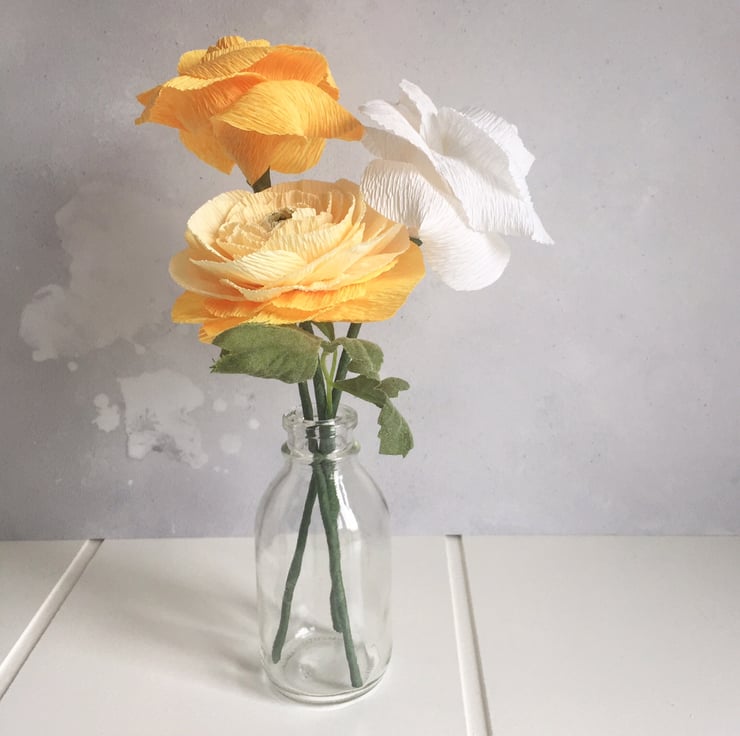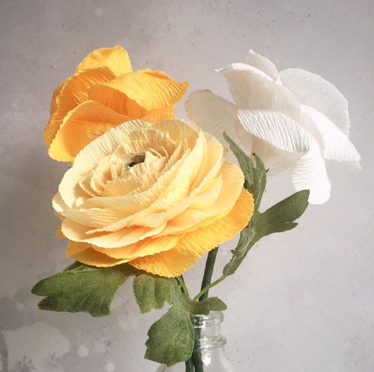 Every flower is hand made, every petal hand cut and shaped from the very finest of Italian crepe paper.