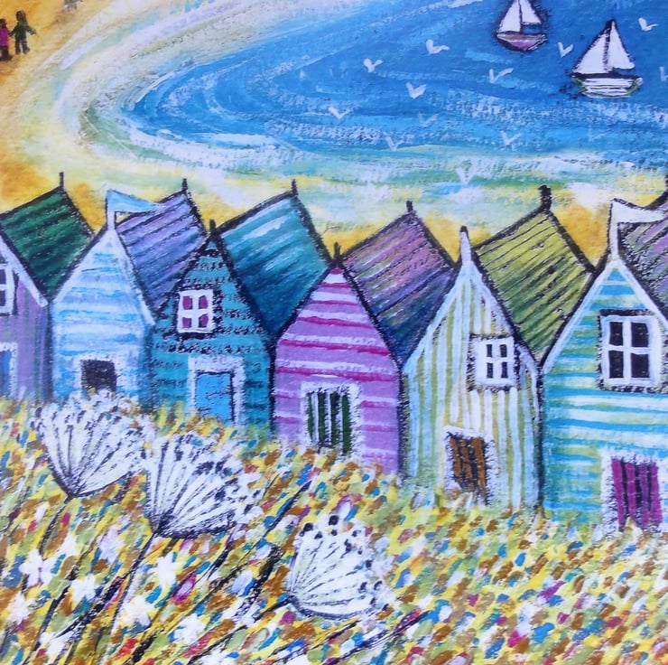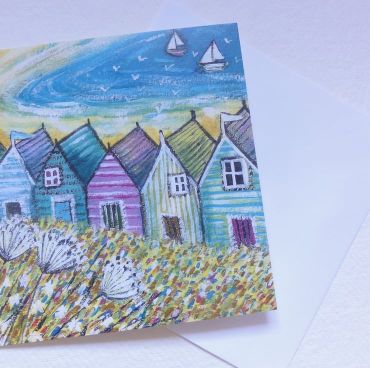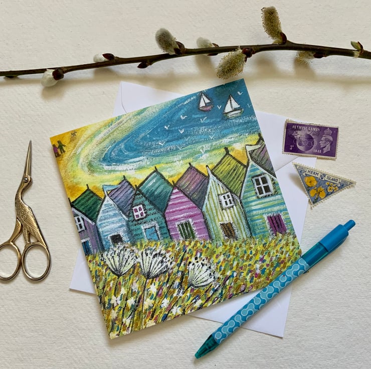 This card has been made from one of my original paintings. The inspiration for the painting was brisk beach walks when the wind is blowing and you're wrapped up, and you feel invigorated afterwards.