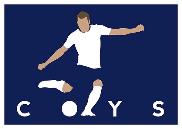 If you’re a Tottenham Hotspur fan on social media then you have probably used COYS a few times. For the uninitiated it simply means Come On You Spurs. This poster depicts the 'O' as a football being struck by Spurs fans favourite Harry Kane.