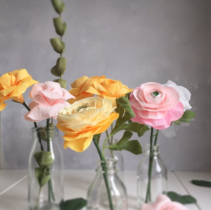 Every flower is hand made, every petal hand cut and shaped from the very finest of Italian crepe paper.