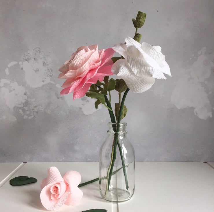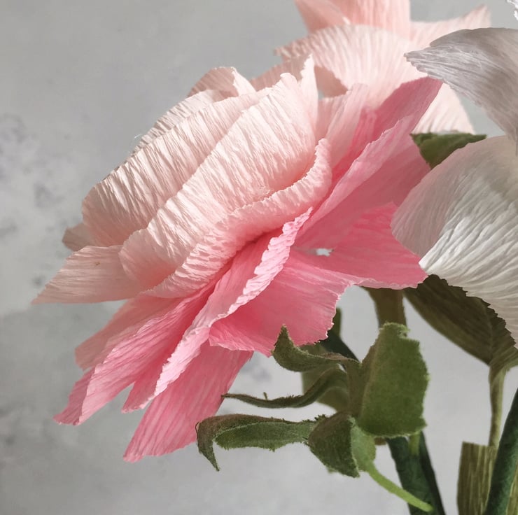 Every flower is hand made, every petal hand cut and shaped from the very finest of Italian crepe paper.