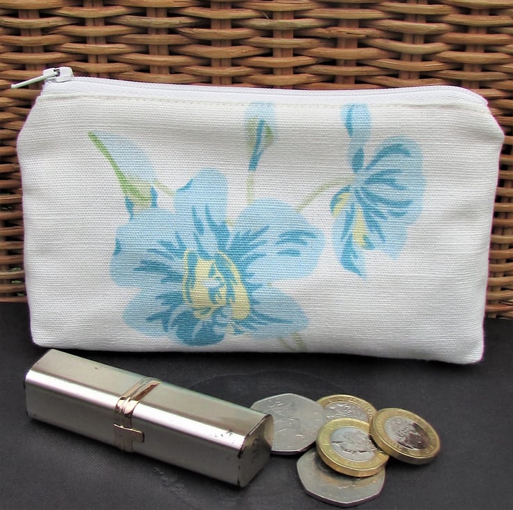 This large purse could be used as a coin purse and is large enough for bank cards and keys. It is also large enough to be used as a small make up bag or as a mobile phone pouch. It would make an ideal gift, perhaps for a keen gardener.