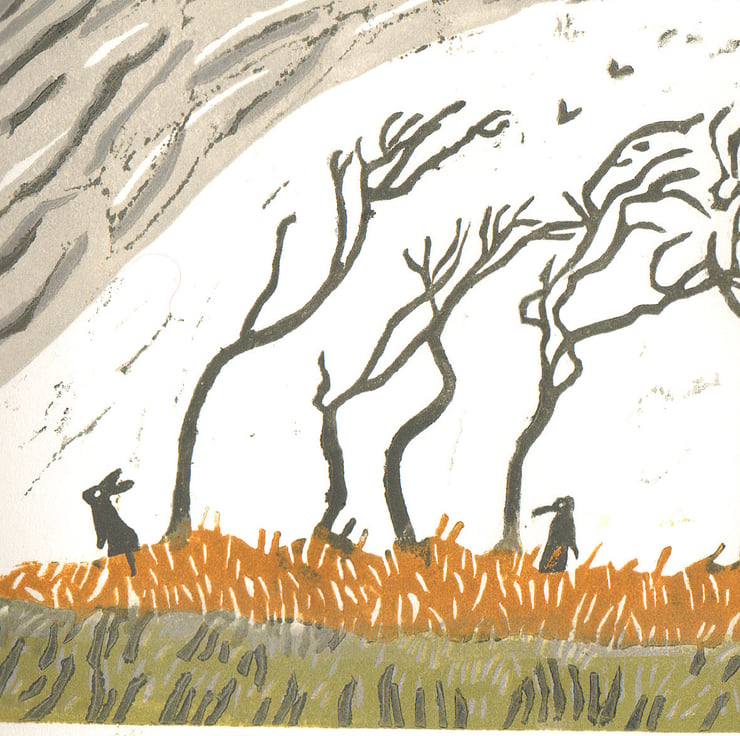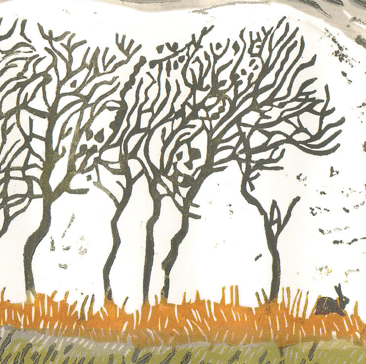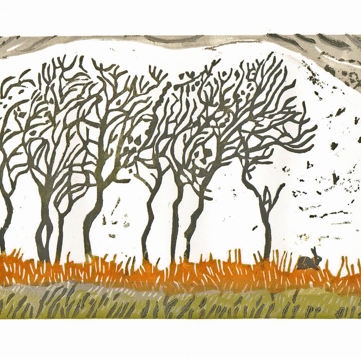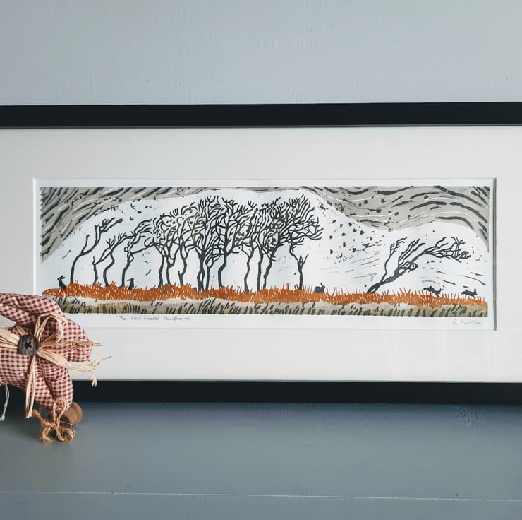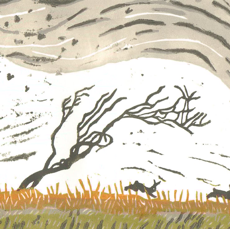This is a lino-print I designed, cut and printed on a hand-press in my attic studio.