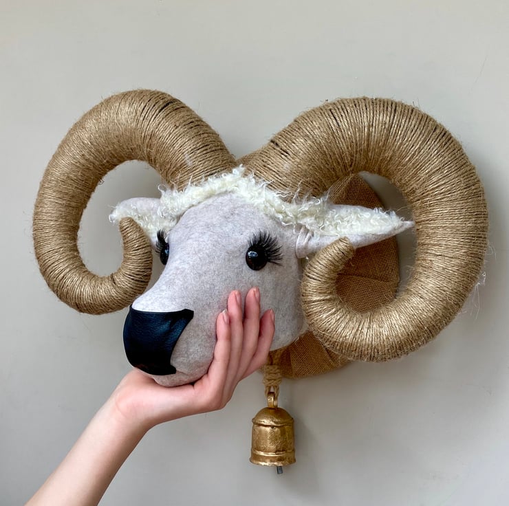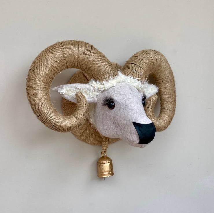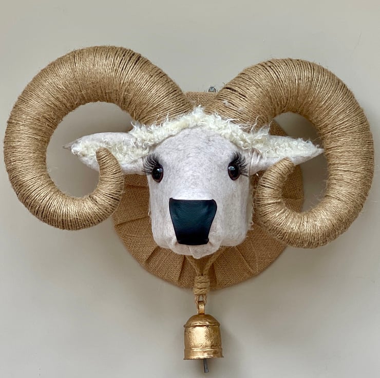 Handmade Ram head with working bell.
