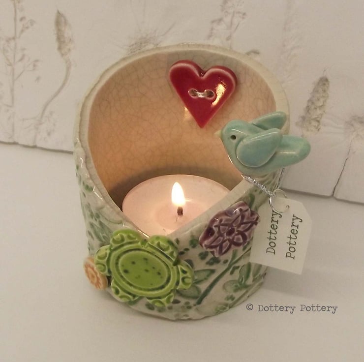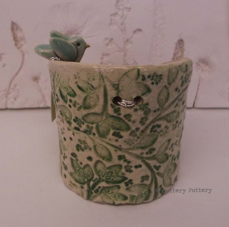 It is then glazed with a vintage style crackle glaze and fired again to a top temperature of 1100 degrees, so it is nice and strong.
