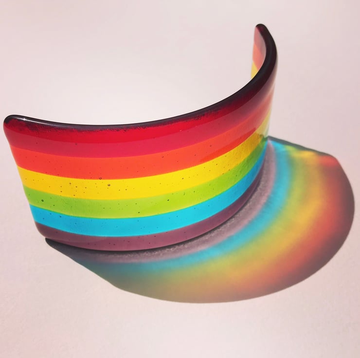 Made from translucent red, orange, yellow, green, blue and violet glass.