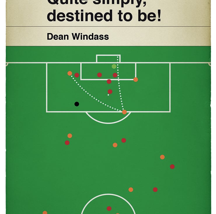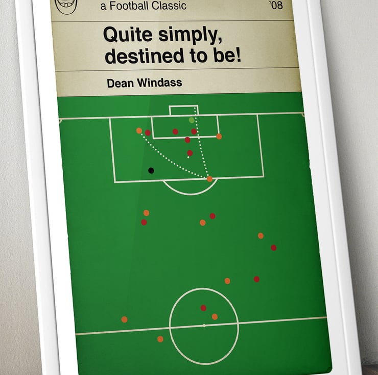 This version depicts the amazing volleyed winner for Hull City versus Bristol City in the Championship Play-Off at Wembley in 2008. The goal was scored by hometown hero Dean Windass in the 38th minute and secured Hull City's first top flight promotion in the clubs history.