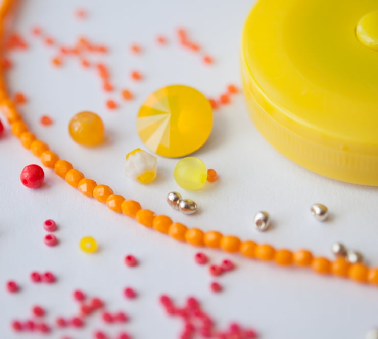 All of the beads you need to make one of my Baroque Tape Measure Srrounds, plus the right tape measure. The pack includes Swarovski Rivolis; Swarovski Bicones; Miyuki seed beads and drops; Czech fire polished crystals and round beads and bonus feature beads from my collection, so you can design and make your own unique tape end using the techniques you've just tried. Beads sent may vary very slightly from those shown in the photos, as sometimes I can't get exactly the same ones, but they will always be just as lovely or even lovelier.