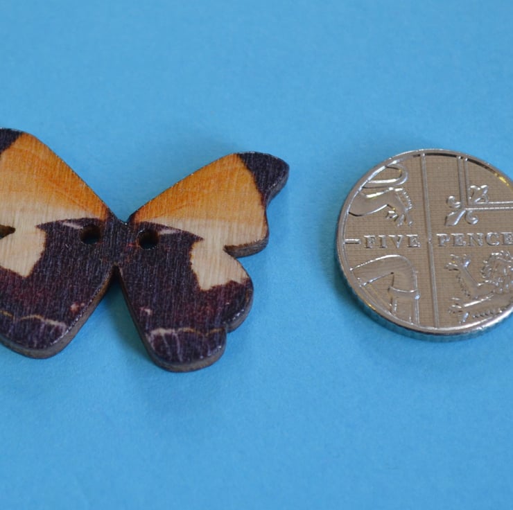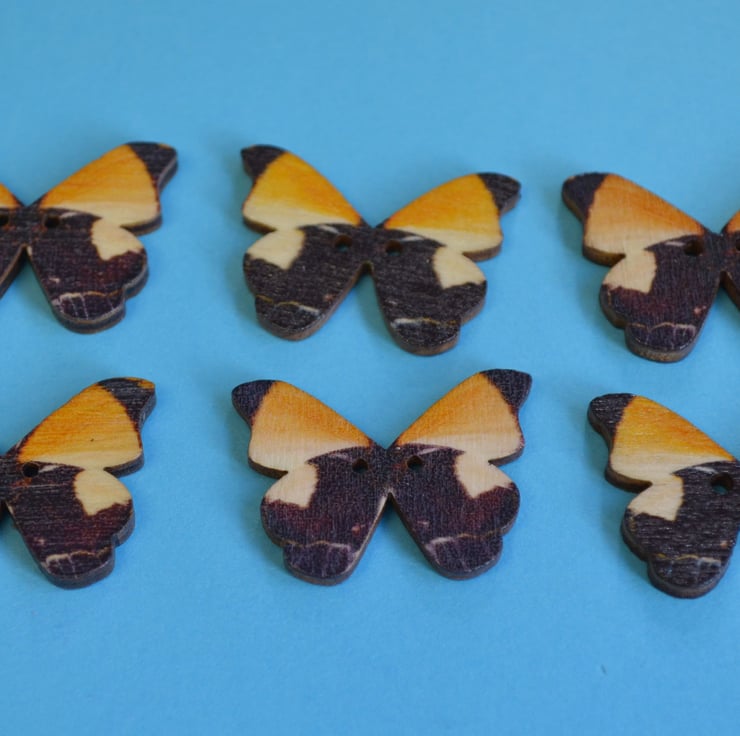 Wooden Butterfly Buttons Yellow Orange Brown Black 6pk 28x20mm (B1)