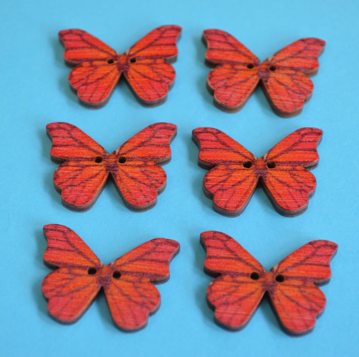 Wooden Butterfly Buttons Red Orange6pk 28x20mm (B3)