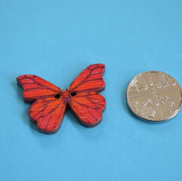 Gorgeous printed wooden butterfly shaped buttons.