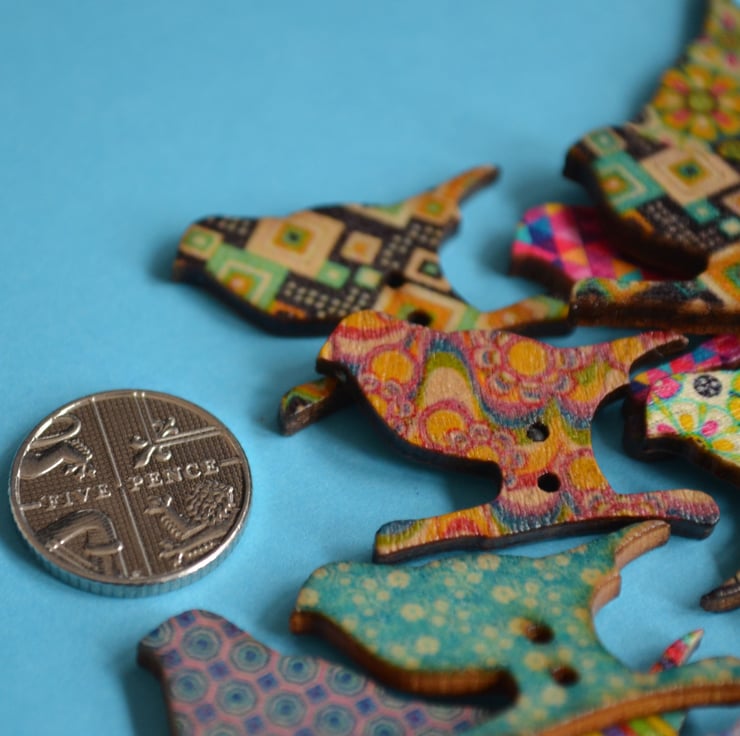 Wooden Bird Buttons Mixed 6pk 30x20mm (BD11)