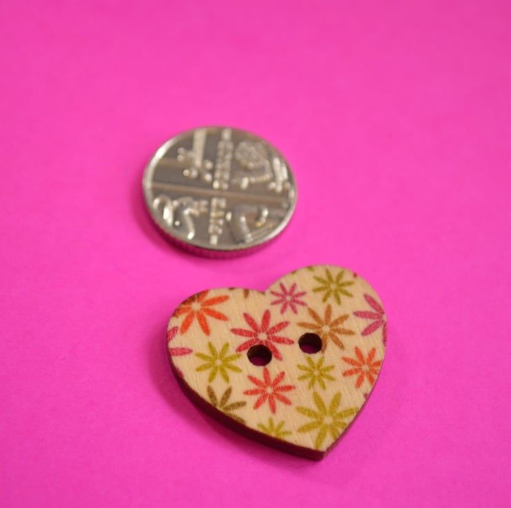 Cute printed wooden heart shaped buttons.
