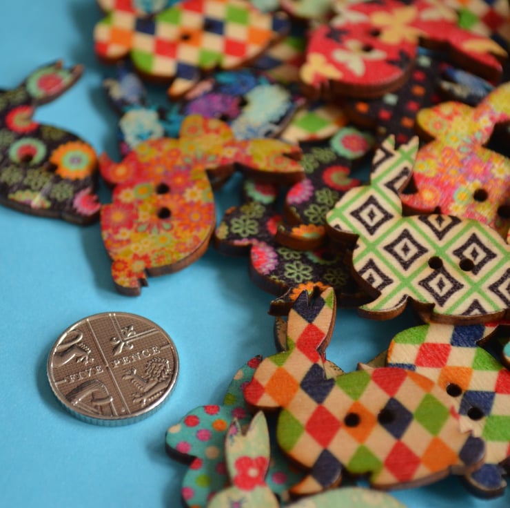 Wooden Rabbit Buttons Mixed 30x30mm Bunny Hare (R2)