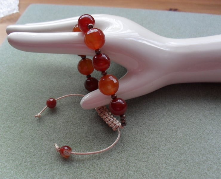 Bracelet has small 6 mm agate beads at the end of the cords