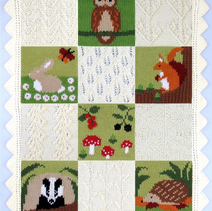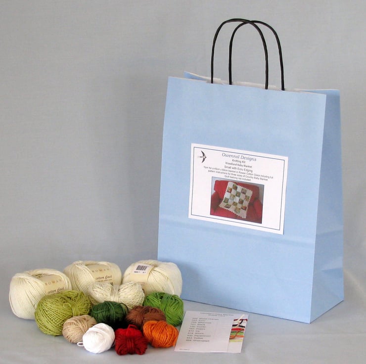 Knitting kit for a small Woodland Baby Blanket 45cm x 60cm. The pattern is NOT included, please order a PDF copy from my Knitting Patterns Collection or message me if you would prefer a printed copy on good quality colour paper.