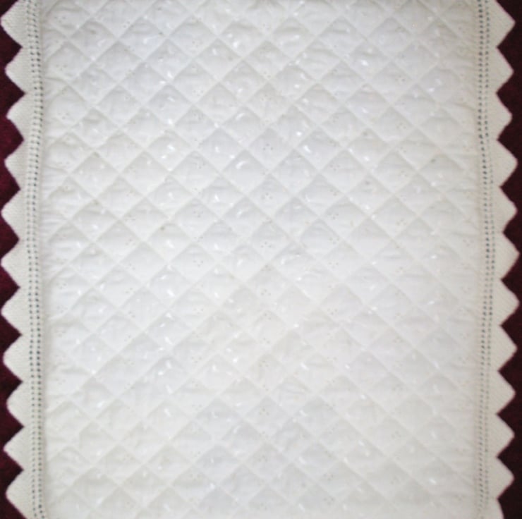 Quilting is not included, but it is available to purchase in my Folksy shop cut to 47cm x 62cm allowing a 1cm hem to be turned all round. There are instructions in the pattern for how to add the quilt backing to the blanket. No additional P&P if added to your basket with the kit.