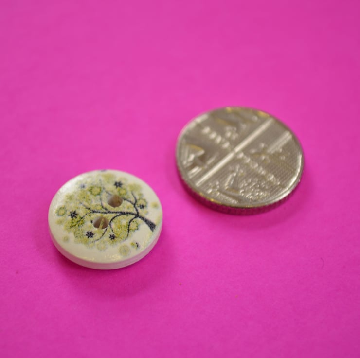 15mm Wooden Tree Blossom Buttons Green White 10pk Leaves (ST9)