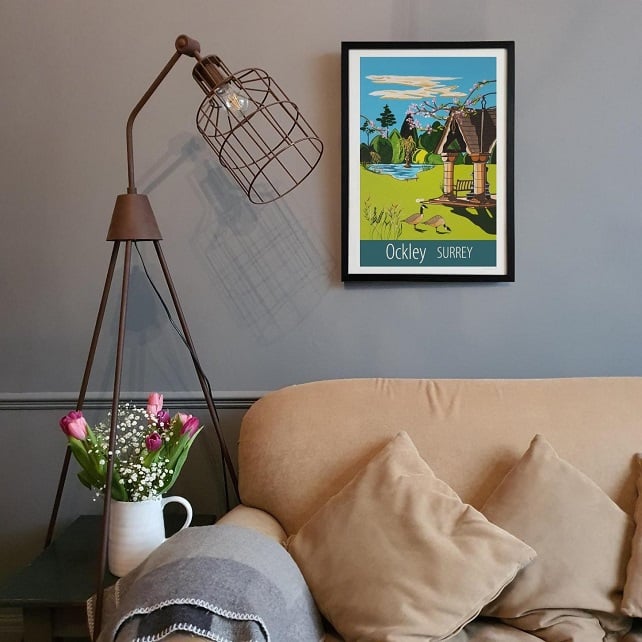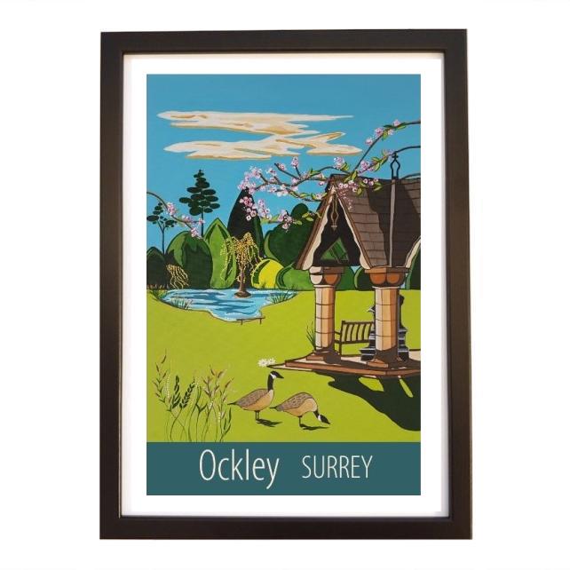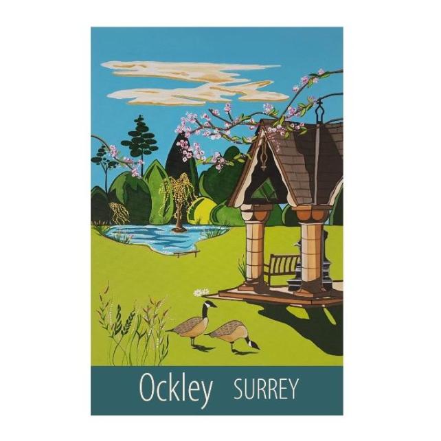 A contemporary travel poster style print of the Surrey village of Ockley, from my own original acrylic painting.