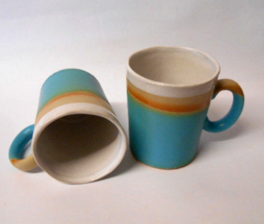 Wheel thrown stoneware satin textured finish Turquoise blue dipped mug.