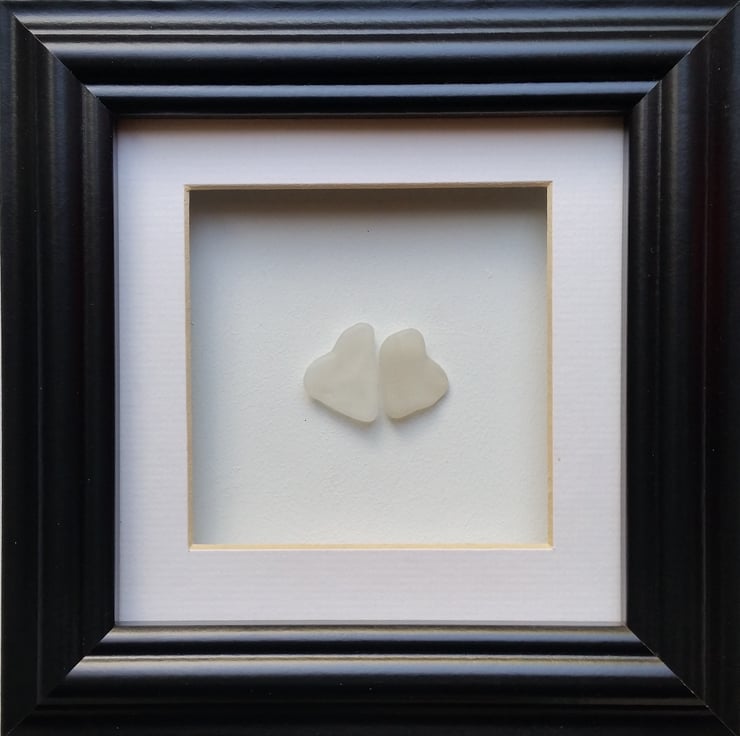 Two heart shaped, beautifully ocean smoothed, nuggets of sea glass that fit together perfectly.