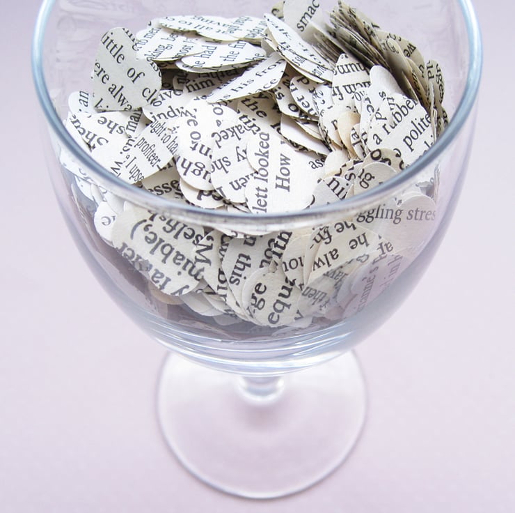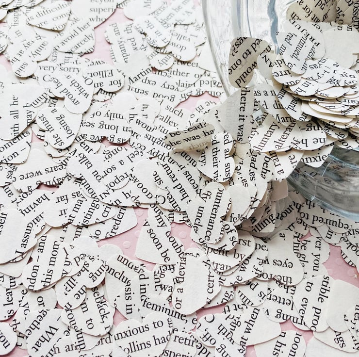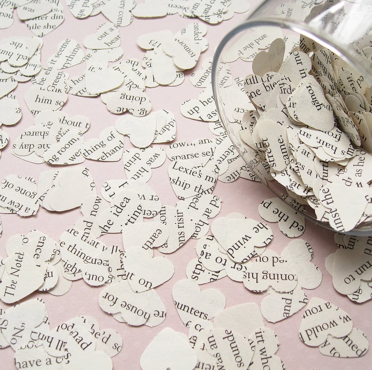 Delicate hand punched hearts from a Star Wars book add an extra touch to a special occasion or project. They can be used in many ways: