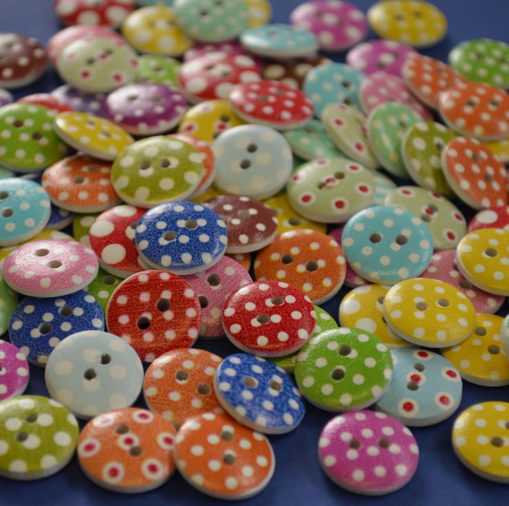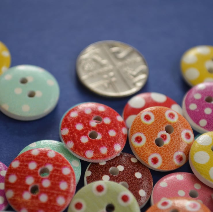 15mm Wooden Spotty Buttons Random Mix 10pk Spot Dot (SSP3)