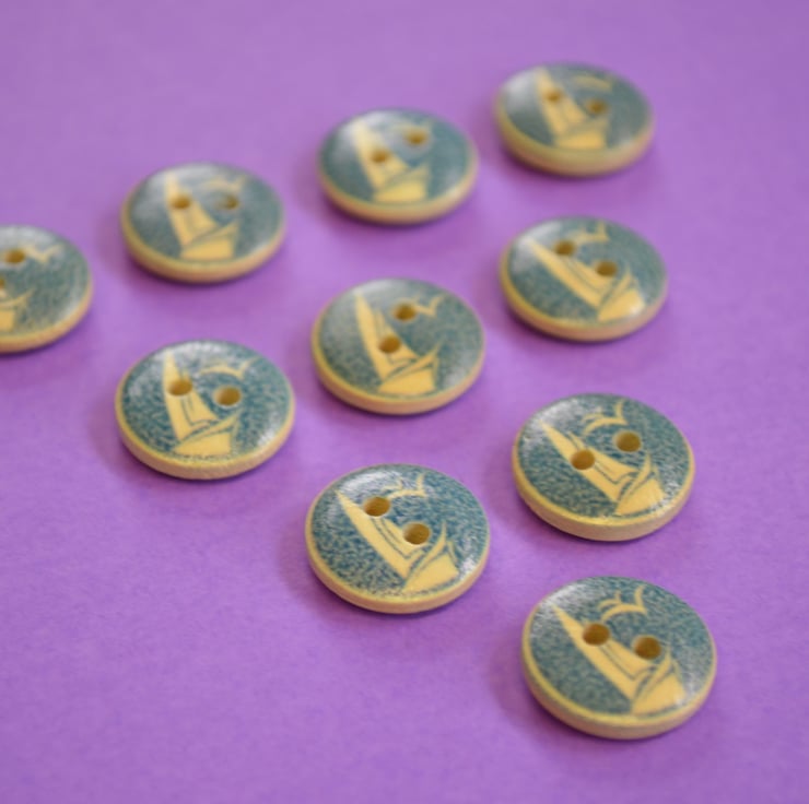 15mm Wooden Boat Buttons 10pk Nautical Sea Ship (SNT5)