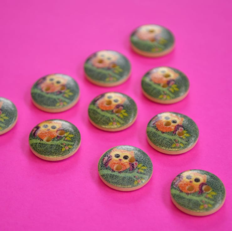 Sweet printed owl wooden buttons.
