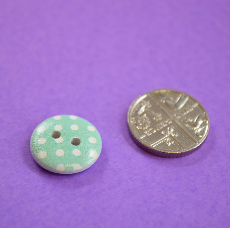 15mm Wooden Spotty Buttons Aqua Blue With White Dots 10pk Spot Dot (SSP6)