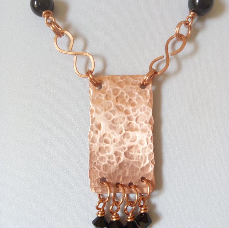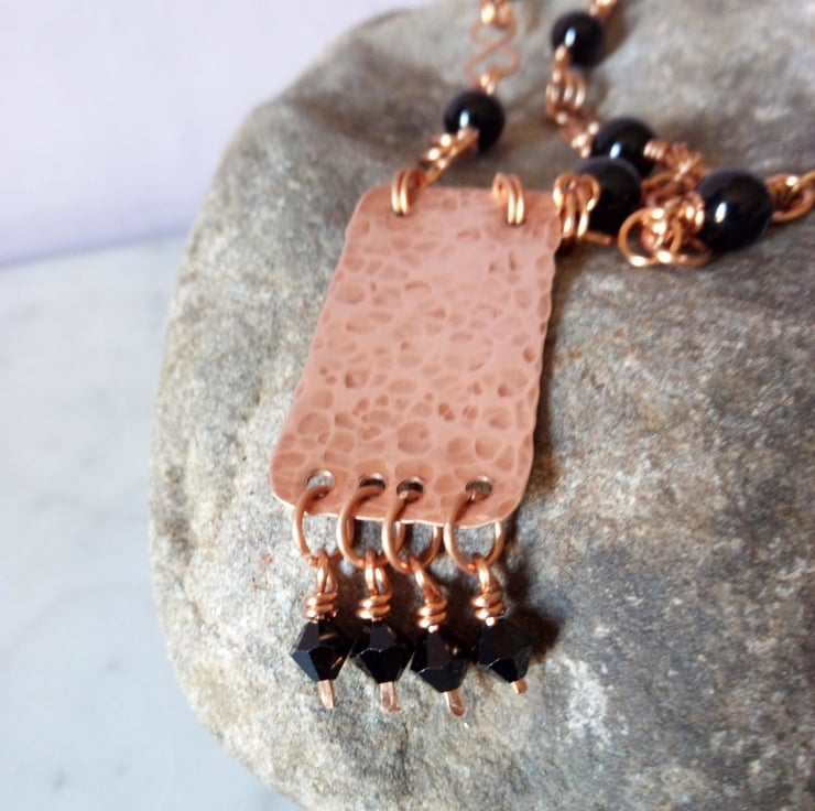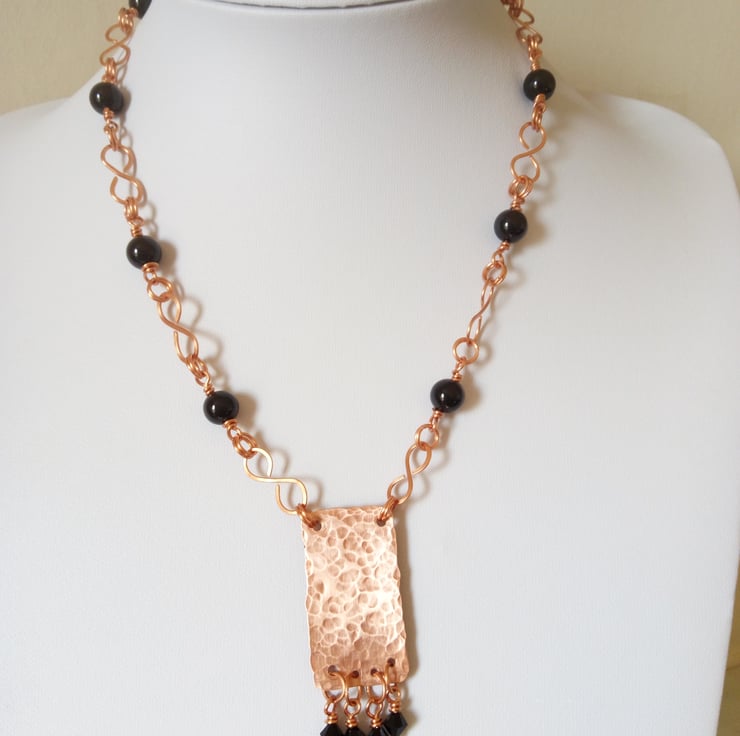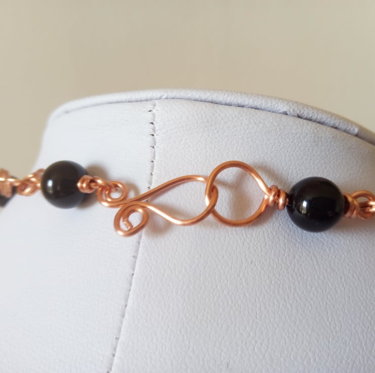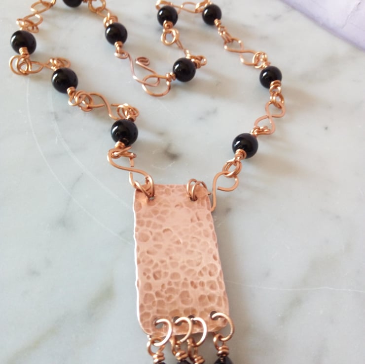 THE CHAIN IS HAND MADE WITH COPPER WIRE AND BLACK 8 mm ONYX GEMSTONE.
