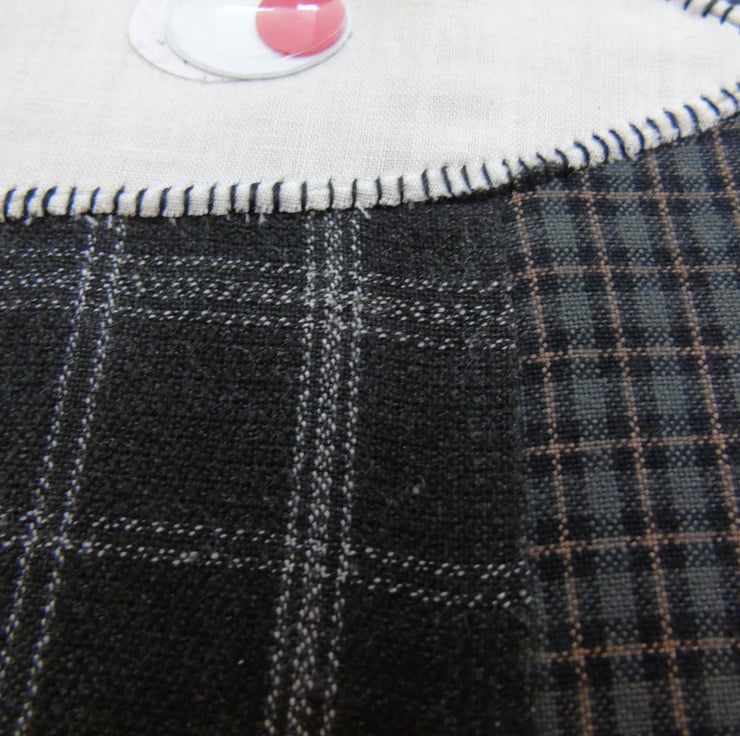 This unique fabric-covered pinboard features a bold ninja design, complete with a black mask made from an upcycled skirt—adding character and a sustainable touch.