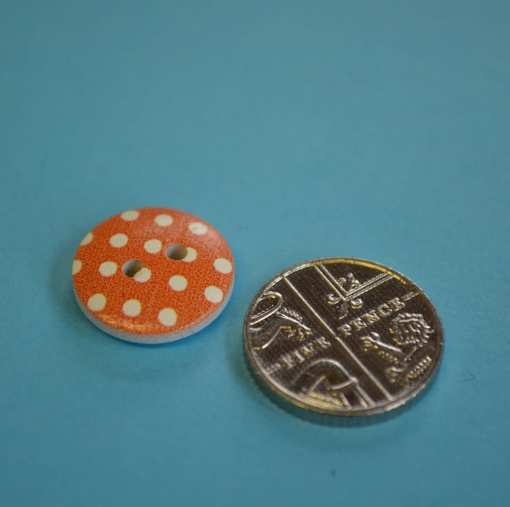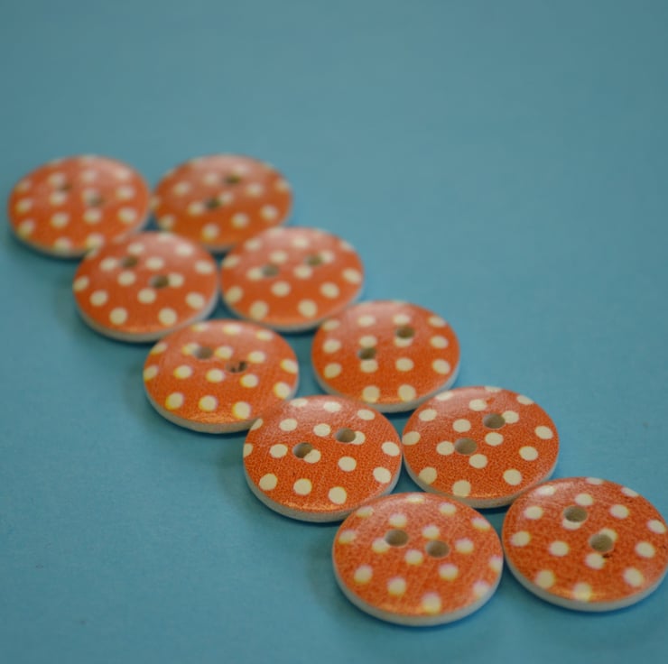 15mm Wooden Spotty Buttons Orange With White Dots 10pk Spot Dot (SSP11)