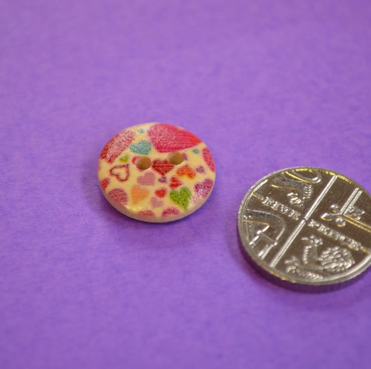 15mm Wooden Multicoloured Heart Buttons Natural Wood 10pk (SNH3)