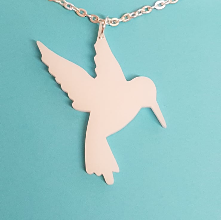 A sweet little hummingbird necklace. The charm is approx 4.5cm in size, and is available in other colours.