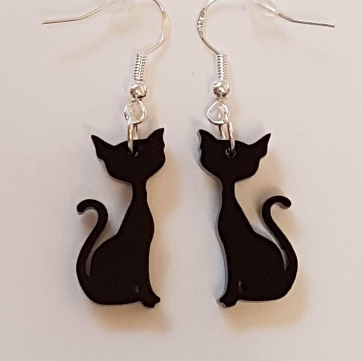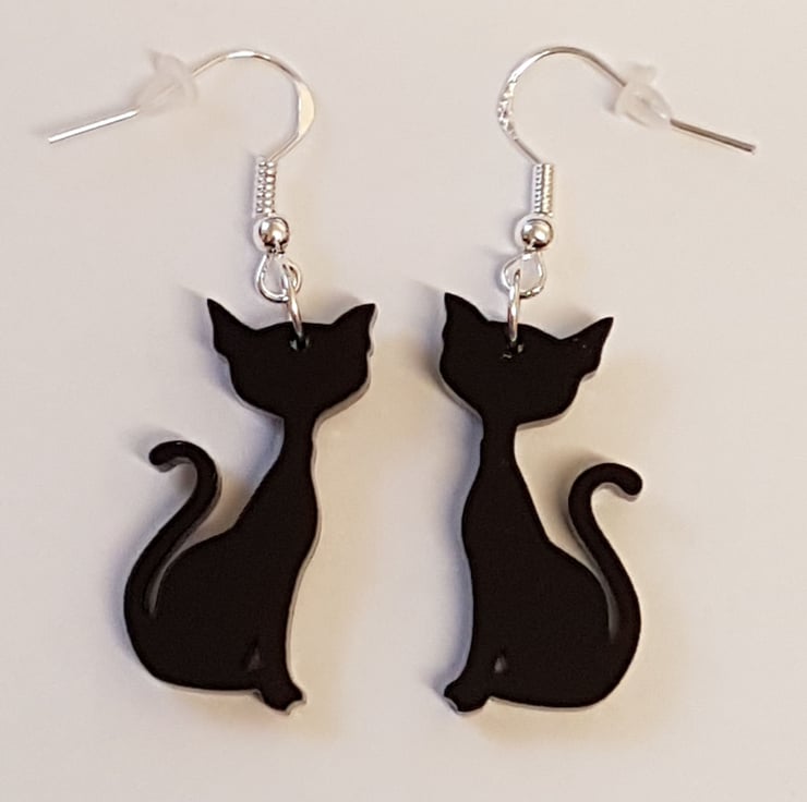 Just perfect for cat lovers, a cute little sitting cat! The cats on these earrings measure approx 3cm in height and are available in either black or white acrylic. These would also be perfect to add to your Halloween outfit.