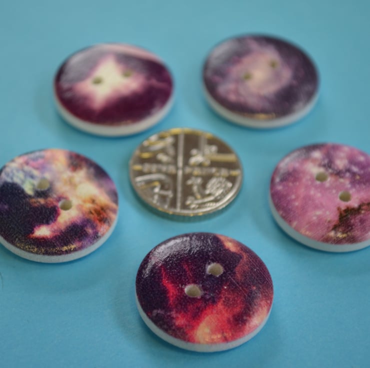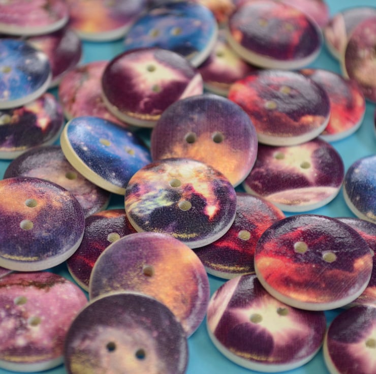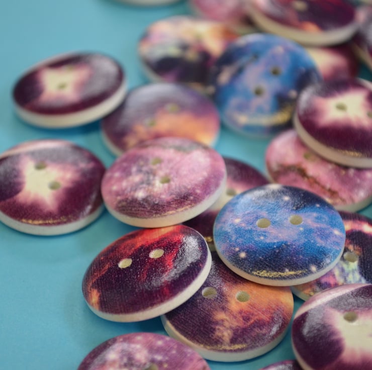 Funky printed wooden space buttons.