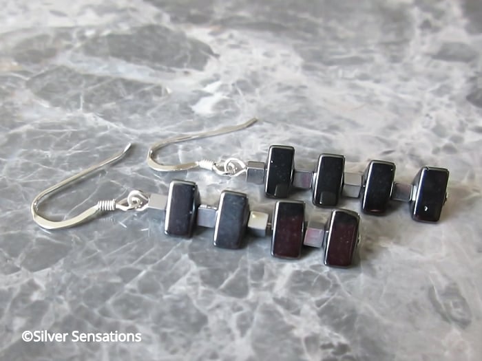 These limited edition handmade Hematite earrings have both black & silver tones.