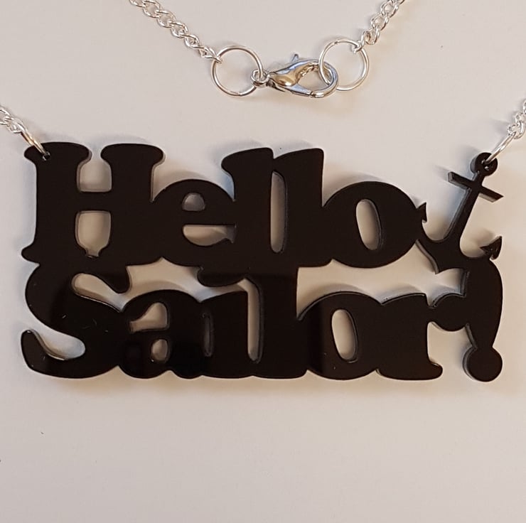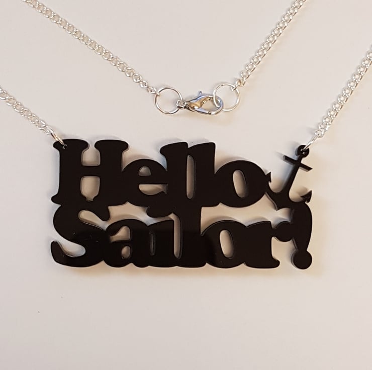 Ahoy Matey! You will just fall in love with this Hello Sailor necklace with a little anchor approx 6.5cm wide and available in a choice of colours.