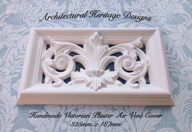 Upgrade your plain air-vent cover with one of our handmade ornate plaster covers. Made from fine British Casting Gypsum plaster in Essex based workshop by time served fibrous plaster craftsmen, a skill that dates back hundreds of years.