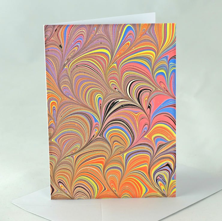 This bright and breezy multicoloured marbled note card was hand made by me in the Lincolnshire wolds.