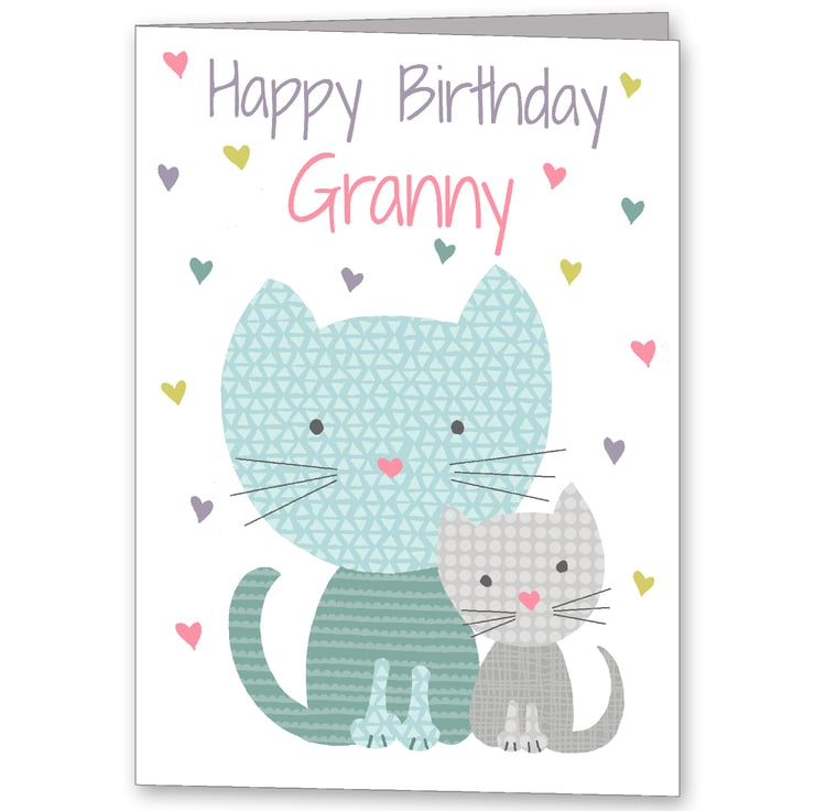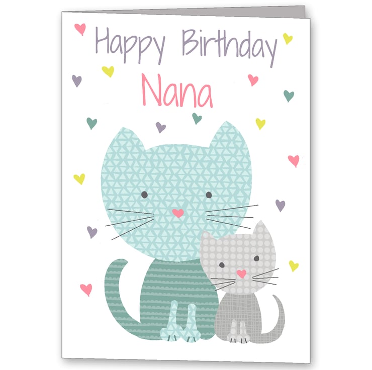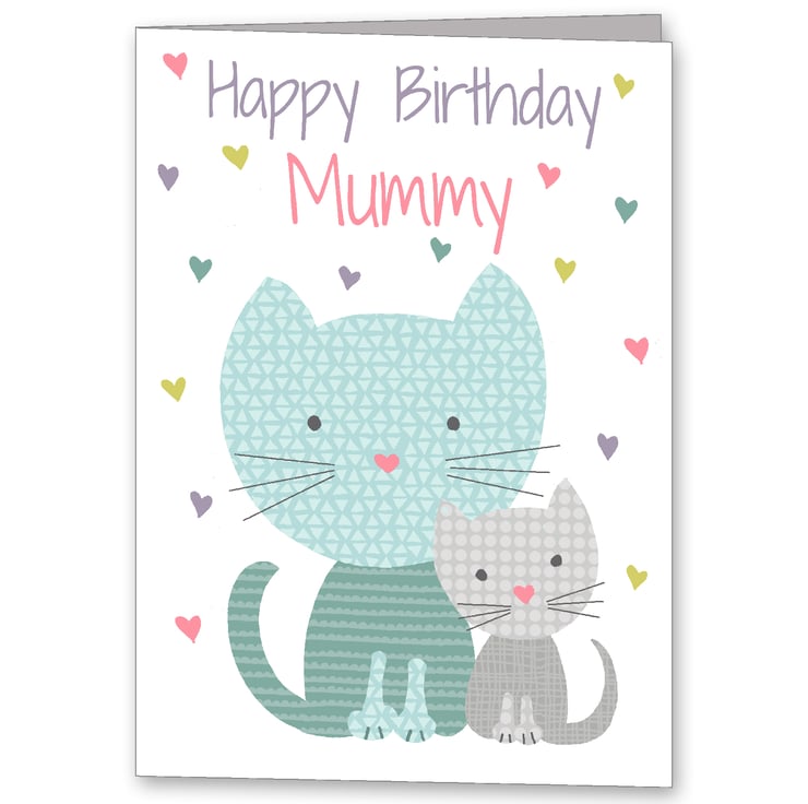 This cat birthday card features a cat and her little kitten. Perfect for a little one to send birthday wishes to their Mummy, Nana, Grandma, Granny or Step Mum. Just let me know the recipient when you place your order and I will print your card from my studio to order.