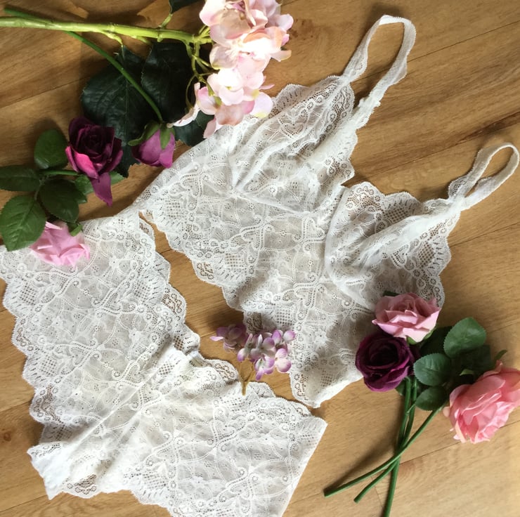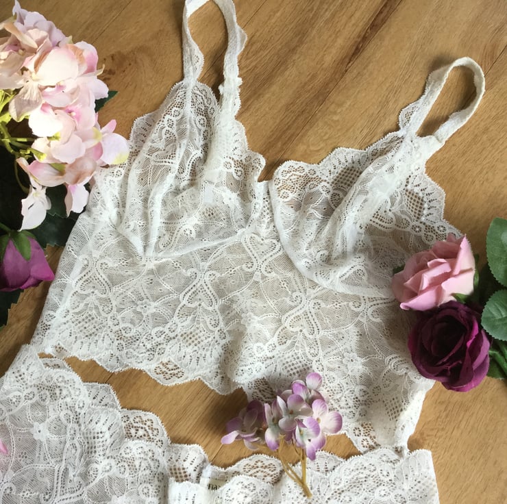 Romantic and comfortable pretty white l Lingerie set , custom made from soft stretch lace.